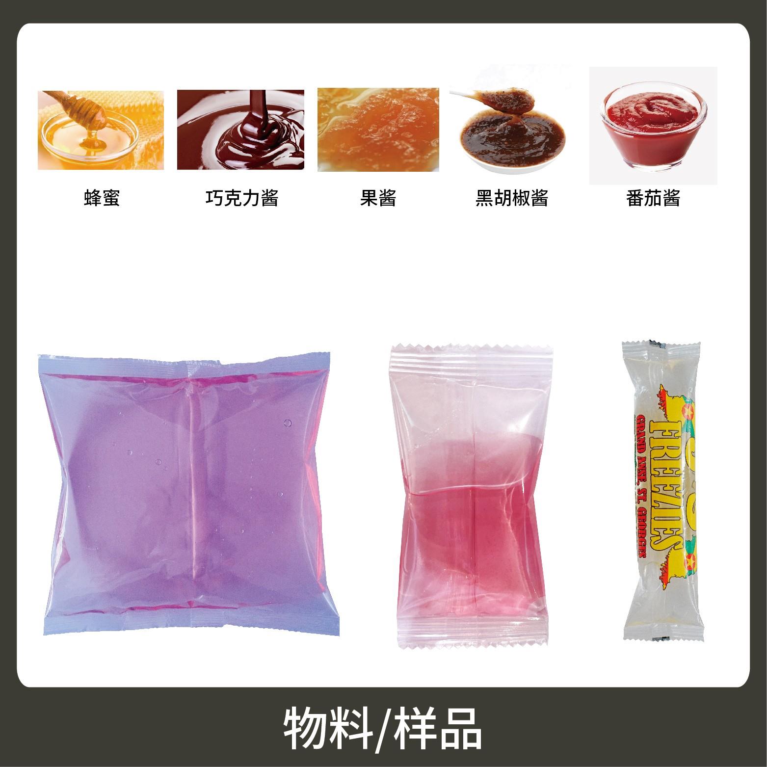 1、適用于食品、醫(yī)藥、化工、化妝品行業(yè)中液體、醬料物品的計量包裝,如:碎碎冰、黑胡椒、辣椒醬、果醬、番茄醬等。