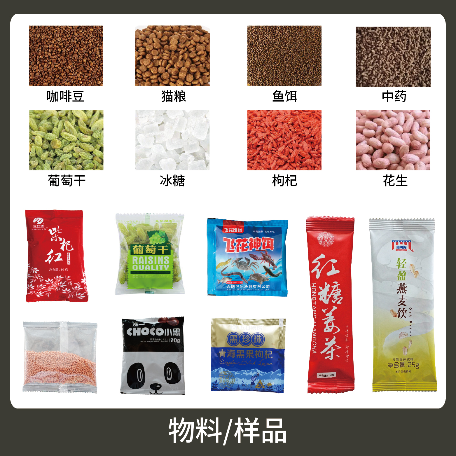 適用于食品、醫(yī)藥、化工、化妝品行業(yè)中顆粒物品的計量包裝,如:堅果、炒貨、零食、種子、咖啡、糖果等。